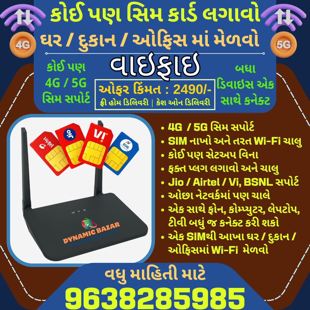 Dynamic Bazar™ 4G / 5G SIM Based WiFi Router – Plug & Play Internet Solution